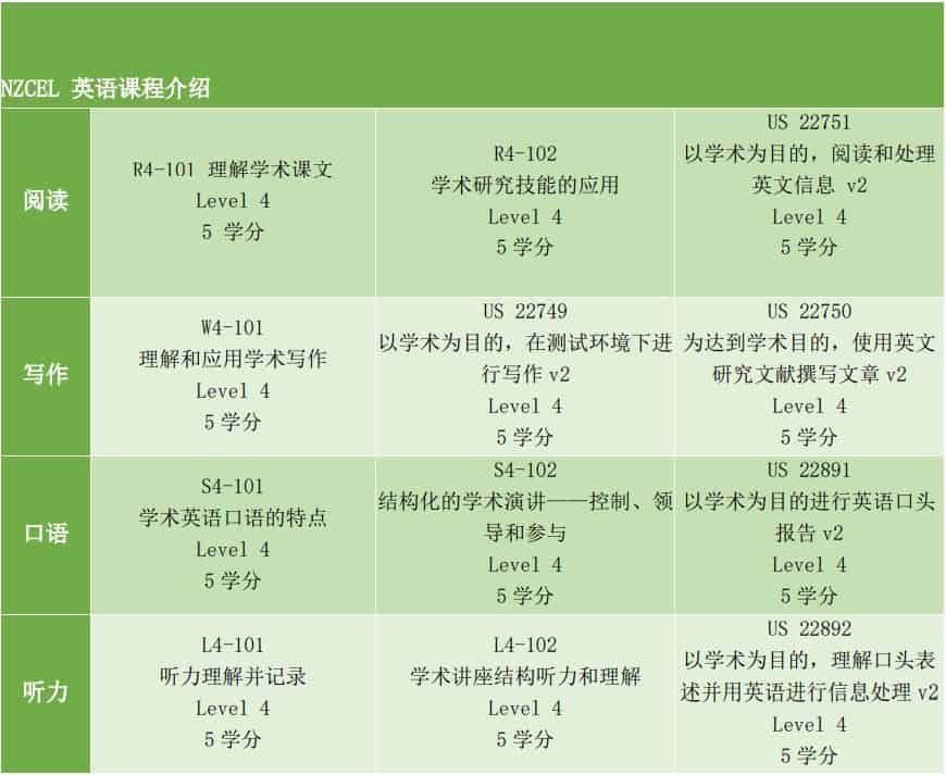 新西兰英语语言证书课程 (Level 4)