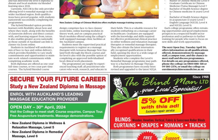 学院扩大了其健康和福祉教育资格,提供 NZQA Version2、新西兰健康和放松按摩文凭 5 级和新西兰理疗按摩文凭 6 级。这些课程由专业的从业教育者指导。导师和学生喜欢混合学习方式,将在线和面对面课程相结合,以增强灵活性。密集的实践课程有助于有效发展临床技能。学生对学院设施给予了积极评价,包括专门的按摩诊所、教学标准、沟通和学术协助。
