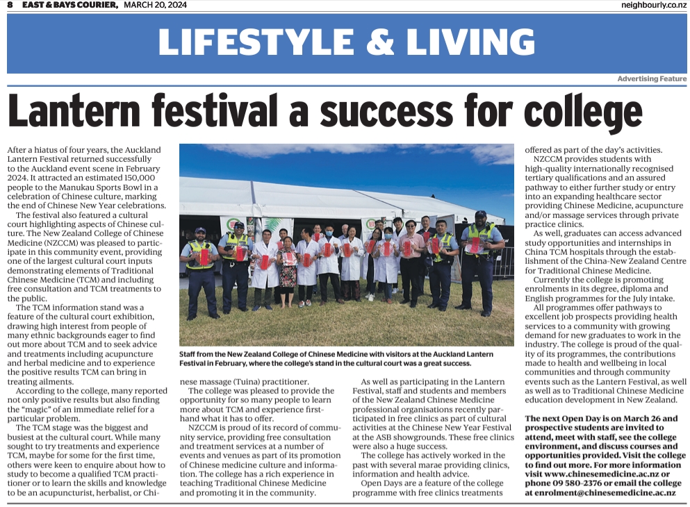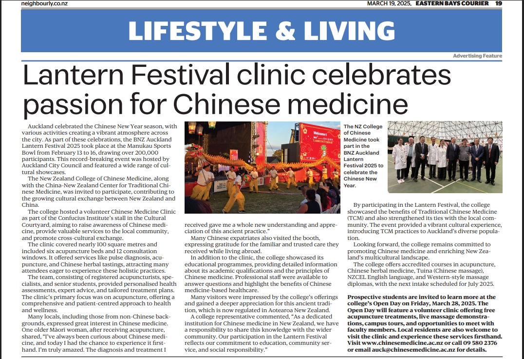 New Zealand College of Chinese Medicine is pleased to announce the successful completion of the accreditation application process for the Bachelor of Health Science (Acupuncture and Herbal Chinese Medicine), the Master of Chinese Medicine and the Graduate Certificate in Chinese Medicine (Tuina Massage). The Chinese Medicine Council of New Zealand (CMCNZ) has confirmed the following: […]